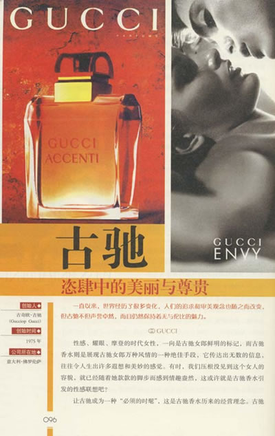 香水是柔媚的,冈为它过于柔情,过于细腻,而且以一种特有的热情包裹着我们的生活,给我们创造了许多馨香四溢的感觉和故事。每一个关于香水的感觉和故事都是香甜的,都可以在十足的体验中找到文化的韵味。当我们追忆香水的发展历程时,不由得被这种人类不断完善自我、追求自身完美的文化态度而深深折服,为这股体现人类文化生活和文化追求的香味而深深陶醉。