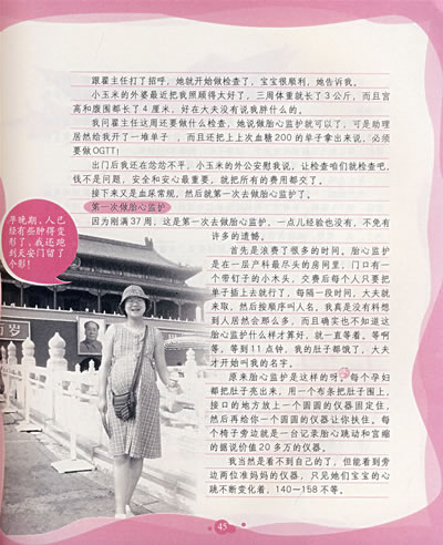 本书详细记述了作者妊娠前的准备及妊娠早、中、晚期及产后的各个环节,和从心理、生理方面的自我调节,面对妊娠早期的孕吐带来的痛苦及勇敢的坚持;在怀孕四个月后产前检查过程中对宝宝的担心;宝宝对妈妈的反应带来的欢乐;分娩后宝宝给全家带来的欢乐与幸福无不渗透在书中的字里行间,令人为之感动。