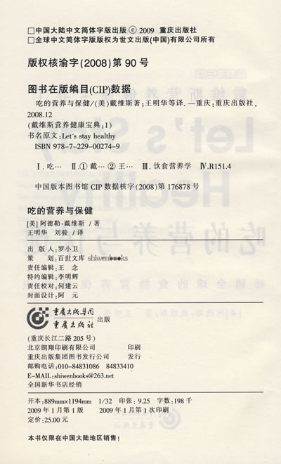 这本书不仅包含了营养学,同时也包括生理学方面的知识。由于篇幅的关系,无法一一列出我们所需的各种食物,但我们应知道的是,各类食物的重要性及它们对身体可能造成的影响。有了这些基本的认识之后,我们就可以正确地运用这些常识,让我们吃得更健康。