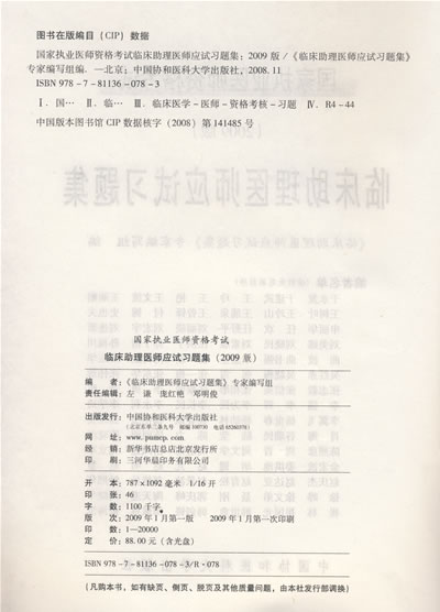 | 《2009国家执业医师资格考试用书:临床助理医师应试习题集(附光盘)》 |