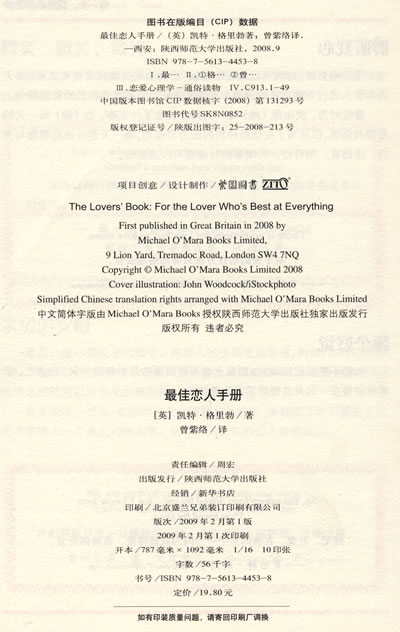 本书是一本非常棒的书,不仅是孩子们喜欢的读物,还深深地打动了我的心——我是和我可爱的女儿贝蒂一起欣赏它的,甚至从里面我找到了我和丈夫结婚纪念日的新点子。真的很棒! ——英国资深书评人 杰璐斯 这本小小的书,谁会想到它那么打动人心。不可置疑,它是今年畅销书中最温情的礼物。送给自己的朋友、爱人,让他们分享你甜美、刺激的恋情体验吧! ——英国作家 苏珊 如果你想给你的恋人一些浪漫的惊喜,却搜肠刮肚也没有好点子,那你千万不要错过这本小书。 ——英国作家 赛金斯 这本书不但能激发你的爱情灵感,更重要的是它还教你如何去赢得恋人的心。 ——美国资深媒体人 菲琪亚 这本书让你深深沉迷但又不会腻味,可以说是一件完美的情人节礼物。 ——《Glamour》杂志 此书是恋人们极佳的选择,它的文字读起来轻松愉快,内容充实,适合当做礼物送给你生命中那个特别的人。 ——《My Weekly》杂志 这本书充满了让你惊叹的贴士、新奇的数据和有趣的轶事,这本恋人手册简直是为那些爱浪漫的人度身订做的。 ——《You & Your Wedding》杂志