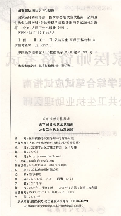 | 《2009最新修订版:国家医师资格考试医学综合笔试应试指南——公共卫生执业助理医师》 |