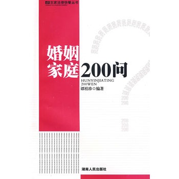 《婚姻家庭200问》讲述了:法制宣传的目的,是为了让广大公民知法、守法,并且懂得运用法律武器来捍卫自身的权利。但法律条文浩如烟海,司法解释层出不穷,查找艰难,理解、运用则更是不易。基于此,我们编辑出版了这套法律快餐丛书,以期给读者提供最方便、最快捷、最有效的法律帮助。丛书以问答的形式,一问一答。设问,力求做到科学、合理。对于公民闻关心、发生纠纷的可能性最大、最易产生歧义的问题,基本做到无遗漏,保证内容全面、完整。解答,力求做到权威、准确,简明扼要。解答完全以法律条文、司法解释为依据,尽量少做法理阐述,少讲为什么,多讲怎样做,注重实用性、可操作性。对一些疑难问题,则通过举例进行说明。