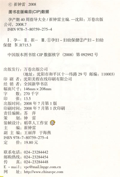 | 《孕产期40周指导大全》 |