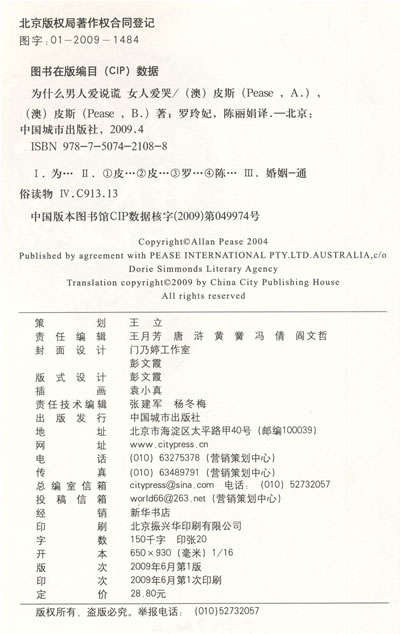 | 作者:(澳)皮斯,(澳)皮斯 著,罗玲妃,陈丽娟 译 |
