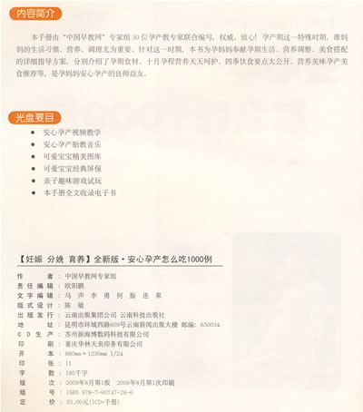 | 《妊娠分娩育养:安心孕产怎么吃1000例(全新版)附光盘》 |