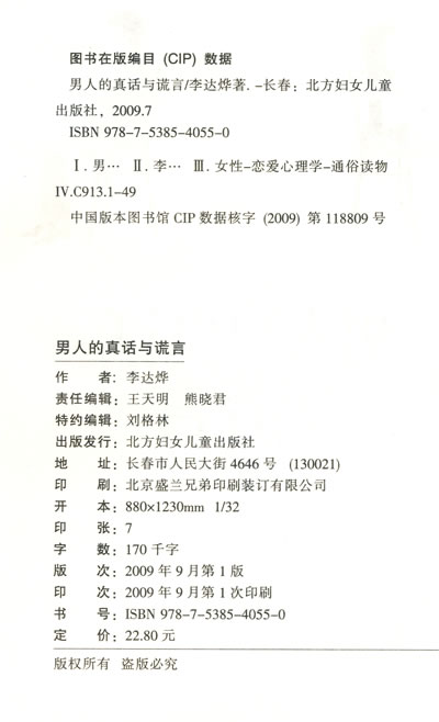 | 《男人的真话与谎话(恋爱心理学)(特惠品)*》 |