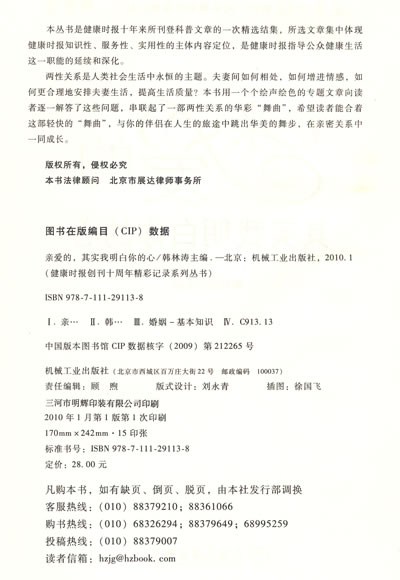 钟?山院士序前言七成美国人婚前要上课“婚后沉默症”隐患多婚姻“生病”,自己先“吃药”示爱还有个技巧问题夫妻道德3个字夫妻之间:假装沉默不如耐心争论夫妻相处也要懂点心理学婚姻也要“定期体检”当妻子在床上发牢骚别把权力规则带回家贤妻更要有危机意识男人晚归,女人别等门当个“会唠叨”的女人别把男人“推出”厨房当好“忙老公”的妻子成功男人在家别当吕布吵架后谁先道歉谁赢半数夫妻过节爱吵架新婚要防“幽闭恐惧”