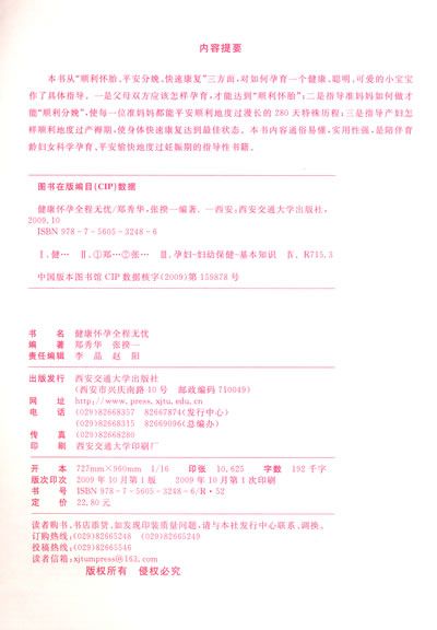 本书从“顺利怀胎、平安分娩、快速康复”三方面,对如何孕育一个健康、聪明、可爱的小宝宝作了具体指导。一是父母双方应该怎样孕育,才能达到“顺利怀胎”;二是指导准妈妈如何做才能“顺利分娩”,使每一位准妈妈都能平安顺利地度过漫长的280天特殊历程;三是指导产妇怎样顺利地度过产褥期,使身体快速康复达到最佳状态。本书内容通俗易懂,实用性强,是陪伴育龄妇女科学孕育、平安愉快地度过妊娠期的指导性书籍。