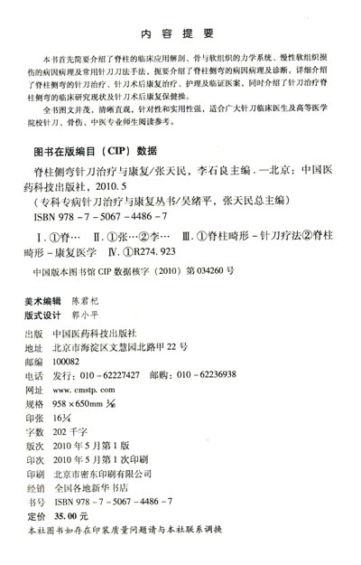 | 《脊柱侧弯针刀治疗与康复(专科专病针刀治疗与康复丛书)》 |