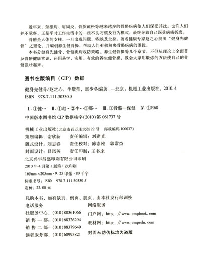 | 《健身先健骨(全民健身专家赵之心 多年实践的精华呈现最新的“养生健骨操”,精美配图,一学就会)》 |