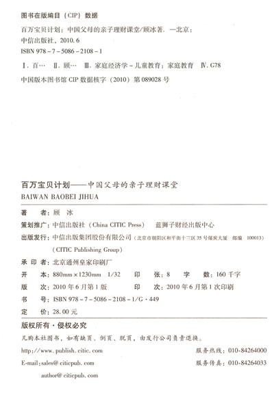 财富可以传承,但财商却必须通过学习获得。小时候养成的好习惯,可以陪伴孩子一生。只要内容相宜,方法得当,孩子完全可以快乐学习经济ABC。永不嫌早的财商培育,就从现在开始,就从《百万宝贝计划》开始。 ——睿稚集团(天才宝贝) 首席执行官刘慧琴