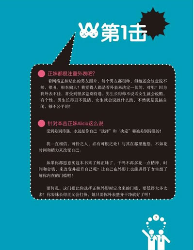能激起读者阅读兴趣的一本书,就像他的作品搭讪书一样,当你看到《正妹心理学》时,相信大部分人都会禁不住自己的好奇心,拾起该书“探索”一番。《正妹心理学》是台湾搭讪教主郑匡宇的最新力作,往往一言中的,一针见血地道出与正妹搭讪时的忌讳原则,令外该书更配有具有爆笑效果的插图,在“搭讪”的领域循循善诱而又不失幽默搞笑!
