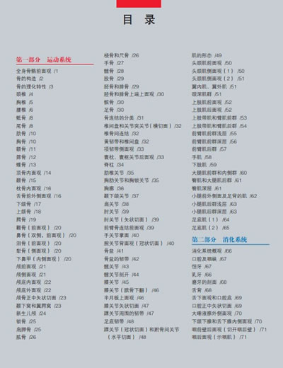 本图谱内容章节按照运动系统、消化系统、呼吸系统、泌尿系统、生殖系统、腹膜、脉管系统、感觉器、内分泌系统、神经系统、头颈部解剖、胸部解剖、腹部解剖、背部解剖、上肢解剖和下肢解剖等分部编排。本书图片以实物标本照片为主,辅以必要的手绘图、临床影像图和内镜照片。图谱内容详实、图片清晰、色彩自然,无论是学术水平,还是视觉效果均是本书追求的目标,希望该图谱能够成为广大医学生、医学教育工作者和临床医生的得力助手。