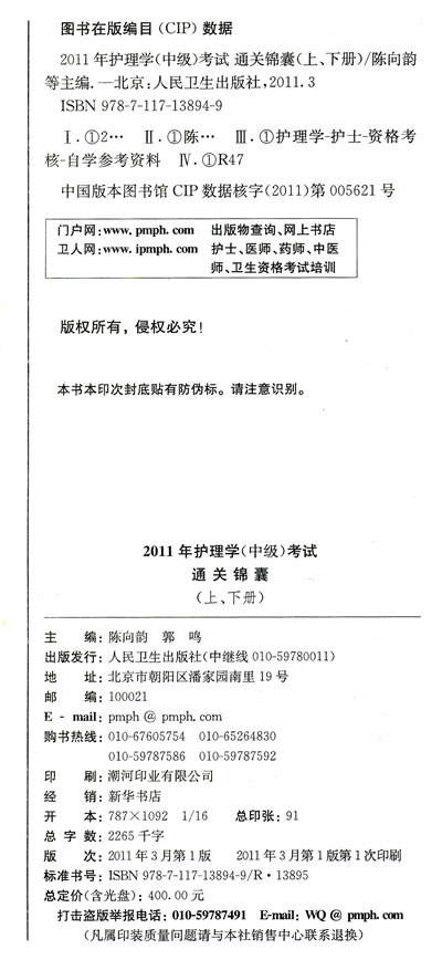 | 《2011年护理学(中级)考试通关锦囊》 |