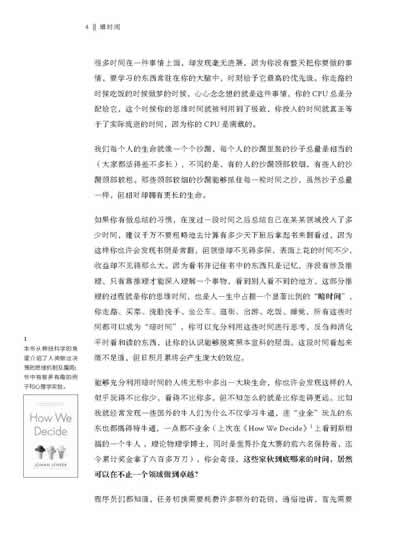 善于利用思维时间的人,可以无形中比别人多出很多时间,从而实际意义上能比别人多活很多年。我们经常听说“心理年龄”这个词,思考得多的人,往往心理年龄更大。有人用10年才能领悟一个道理,因为他们是被动领悟—只有当现实重重撞到脸上的时候才感到疼,疼完了之后还是不记得时时提醒自己,结果很快时过境迁抛之脑后,等到第二次遇到同一个坑的时候早忘了曾经跌过跟头了,像这样的学习效率,除非天天摔坑,否则遗忘的效率总是大过吃亏长的记性。善于利用思维时间的人则能够在重要的事情上时时主动提醒自己,将临时的记忆变成硬编码的行为习惯。