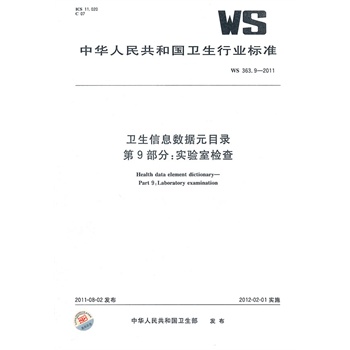 | 《卫生信息数据元目录 第9部分:实验室检查 WS 363.9-2011》 |