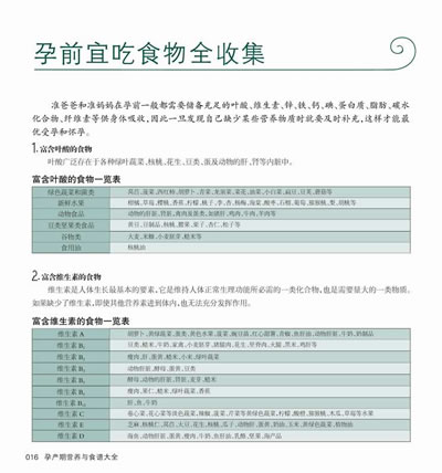 精挑细选——考察营养成分、比较保健功效,从禽鱼肉蛋、瓜果蔬菜中挑选出9种特效食材、23种常用食物,丰富准妈妈的餐桌。