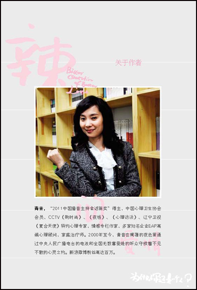 既有女性立场,又有男性视角;既有理论,又有实战;既有心理剖析,又有生活常识;既有意义,又有意思。所以,我推荐《辣问爱情》。