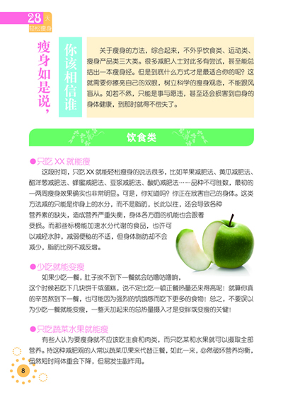 世界上没有丑女人,只有懒女人。对于身材也是一样,没有胖女人,只有懒女人。本书精心策划的28天瘦身计划,按照书中所讲,28天就可轻松实现甩肉、塑形的美好瘦身愿望。好的减肥方法,不仅能要我们轻松“享瘦”,更是一种积极健康的生活方式,也是一种生活品质。