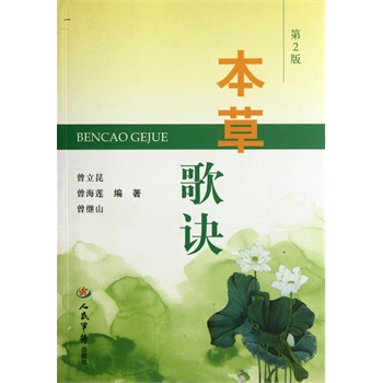 曾立昆等编著的《本草歌诀(第2版)》筛选常用中草药420多味,按药物的主要功效和作用分成20章,再按药物的性味、归经、功效、主治病证、组方配伍、用药宜忌编成歌诀,以七言为主,也有五言、六言,力求做到简明、押韵、顺口、好读、易记。在注解中增加了部分药物比较、常用量。本书介绍方剂和方法1200多个,方法实用有效,有些是临床常用的名方。