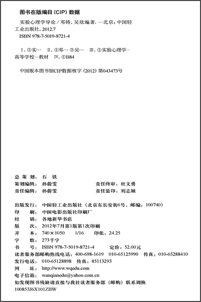 南京师范大学邓铸教授积累20余年教学经验后的诚挚之作!本教材紧扣学科发展之脉动,精练了学生最需要掌握的学科要义。作者以其丰富的教学经验,对实验心理学给予了独到精辟的论述,给人一语中的、清楚透彻之感!可谓广大心理学专业师生之必读教材。“万千心理”原创教材特采用双色印刷,让知识点一目了然,让阅读舒心愉悦!