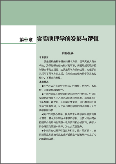 总之,科学的研究方法就是一套具有结构性的系统观察方法,也包括对观察资料的整理和分析程序。我们认为,科学方法既是一个学科发展的前提,也是衡量一个学科成熟水平的标志;既是学习一门科学知识的有效途径,也是从事科学研究的基本工具;既是一个科学家群体联结和沟通的纽带,也是对科学家个人偏见影响学科发展的制约机制。实验心理学所要介绍的就是这样一种科学的心理学研究方法。