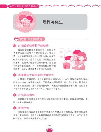 孕育一个既健康聪明又活泼可爱的小宝宝大概是每一对准父母的最大心愿了。尤其是在当今社会中,由于竞争压力较大,父母更希望自己的孩子智力超群,才能出众,以便在将来激烈的竞争中立于不败之地。为了帮助准备怀孕的夫妻实现拥有一个聪明健康的宝宝的愿望,我们邀请了具有丰富经验的孕产专家精心编著《孕产·新生儿护理全程必读》。从孕前保健到孕期营养护理、胎教、分娩、坐月子及新生儿护理,提供全方位科学指导。希望能为每一对夫妻提供帮助。
