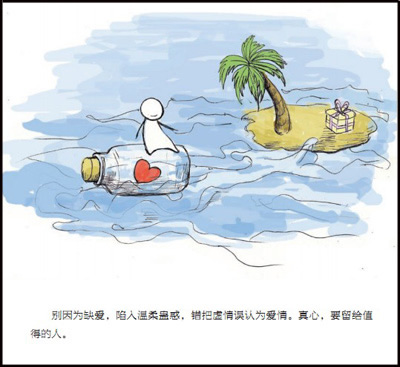 谁都没有错,只是因为成长中的我们渐渐让心背负沧桑,模糊了爱情本来的模样,忽视了曾经那份为爱付出的感动,渐渐失去了爱的能力,竟容许商业定律来左右我们的感情。爱情本不是做买卖,如果成长意味着心的渐渐麻木、爱的退化无能,我们是否甘心?