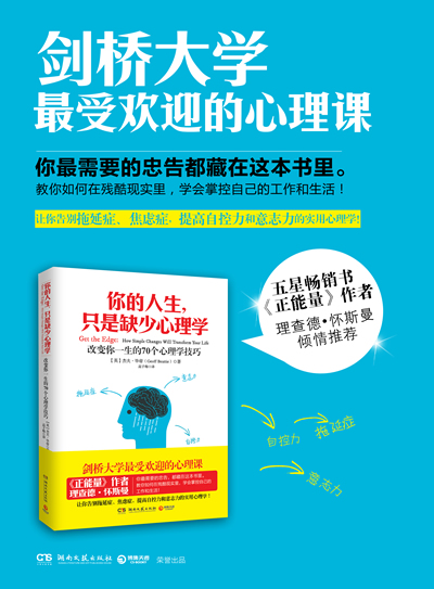 ★五星畅销书《正能量》作者理查德?怀斯曼倾情推荐,剑桥大学最受欢迎的心理课,让你告别拖延症、焦虑症,提高自控力和意志力的实用心理学!
