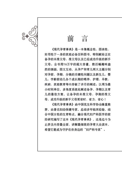 《现代孕育事典》由中国优生科学协会隆重推荐,由著名妇幼保健专家,总结多年临床经验,结合中国女性的生育特点,融合现代妇产科医学的前沿研究编写了这本《现代孕育事典》,这是迄今为止涉及内容最全面、讲解最细致的孕育大众读本,希望它能成为守护在你身边的“妇产科专家”。